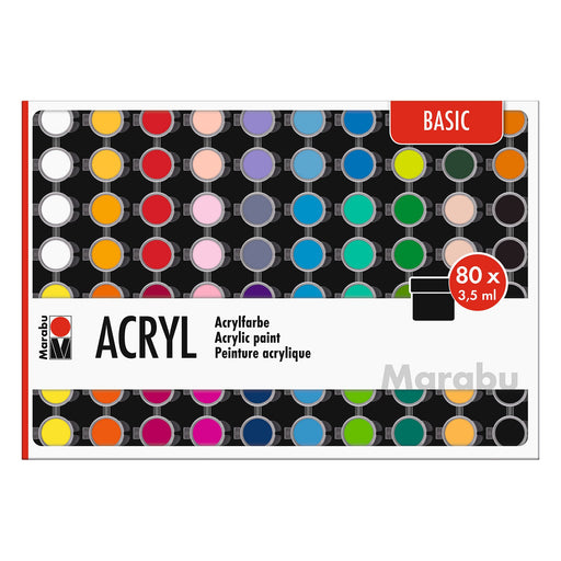 MARABUO Conjunto de Tintas Acrílicas Marabu Basic Colors, com 80 godets de 3,5 ml cada, é uma seleção essencial para seus projetos artísticos. Essas core...