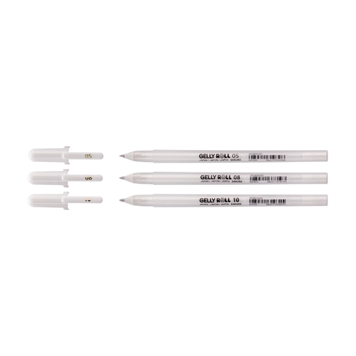 Ver todos os detalhesConjunto de 3 canetas de gel Gelly roll brancas brilhantes
