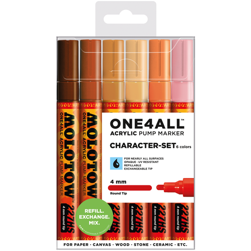 Conjunto de 6 marcadores acrílicos ONE4ALL 227HS SET CHARACTER 4MM Molotow