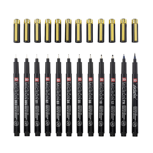 Ver todos os detalhesconjunto de 12 edição limitada Pigma Micron Black & Gold calibrados - Sakura