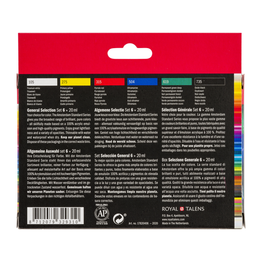 TALENSO conjunto de acrílico Amsterdam General Selection inclui uma seleção de cores ideais para começar no mundo da pintura em estúdio. RECURSOS • F...