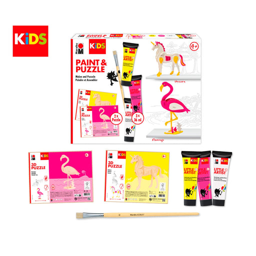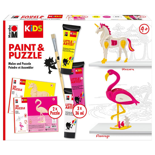 Conjunto de quebra-cabeça 3D Unicórnio e Flamingo + pintura Marabu Kids