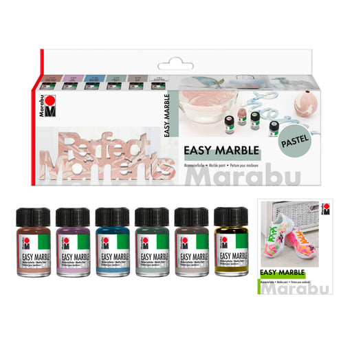 Ver todos os detalhesConjunto de tinta mármore mármore fácil Marabu tons pastel 6x15ml