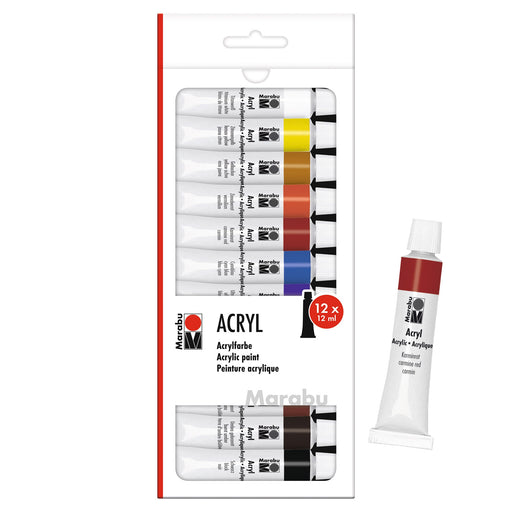 MARABUO Conjunto de Tintas Acrílicas Marabu com 12 tubos de 12 ml cada é uma seleção completa e vibrante de cores que irão inspirar suas criações artísti...